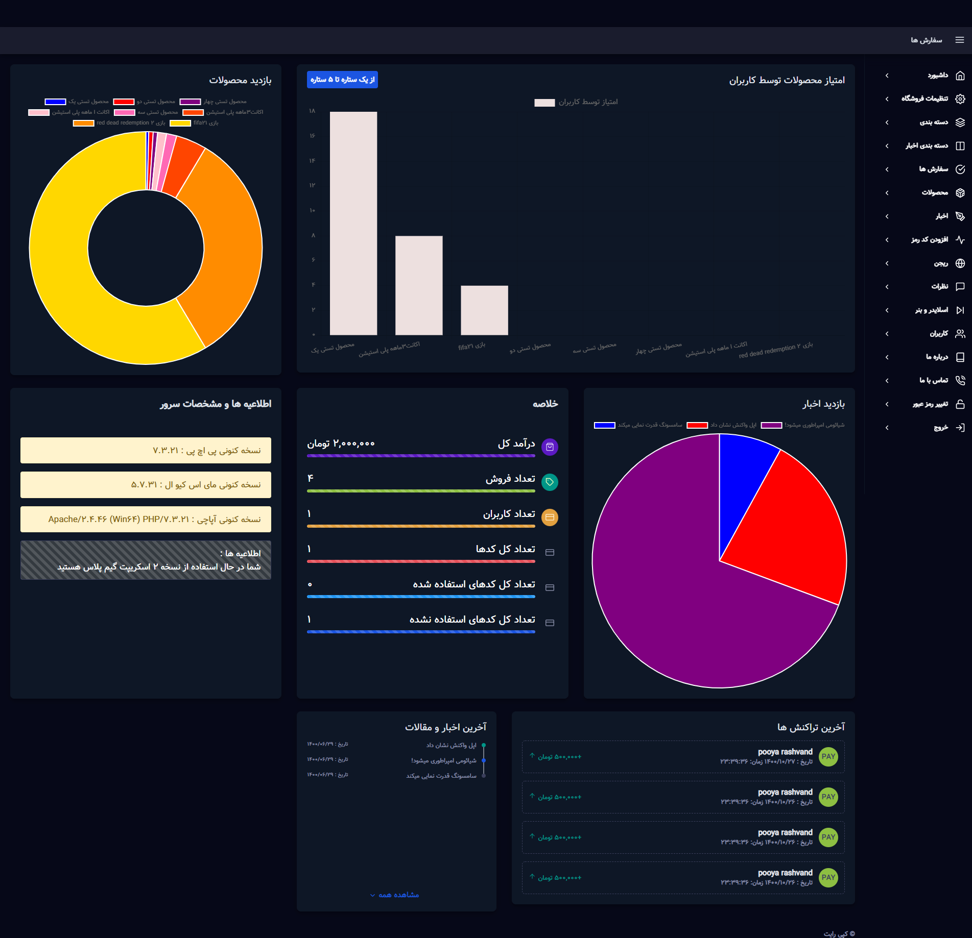 دو حالت فروشگاه عادی و فروشگاه گیفت کارت تنها با یک کلیک! تغییر ui گیم پلاس 2 بصورت کامل اضافه شده انیمیشن به سایت سه لایه کدینگ امنیتی بر روی کد رمز ها پچ امنیتی معتبر ارتقا عملکر موتور جستجو Ajax ارتقا سئو داخلی اضافه شدن چارت و نمودار به مدیریت و اینفوگرافی جذاب خرید با ثبت نام یا بدون ثبت نام کاربر بهبود عملکرد درگاه پرداخت آنلاین بهبود عملکرد پنل پیامکی امکان تغییر ترتیب نمایش محصولات و گروه بندی ها و ده ها تغییر جزئی و کلی دیگر …