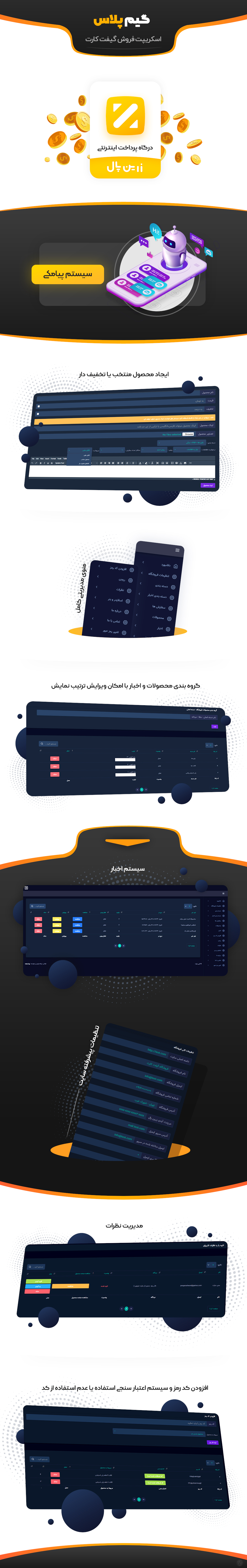 گیم پلاس یک اسکریپت اختصاصی نوشته شده با زبان php است که به شما امکان فروش محصولات دیجیتالی (گیفت کارت و کد رمز) را میدهد.در نسخه 2 این اسکریپت، حالت فروشگاه عادی نیز علاوه بر فروشگاه گیفت کارت اضافه شده است و شما میتوانید محصولات خود را براحتی بفروش برسانید.